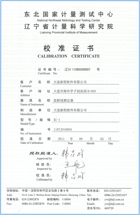 东北国家计量测试中心辽宁省计量科学研究院校准证书
